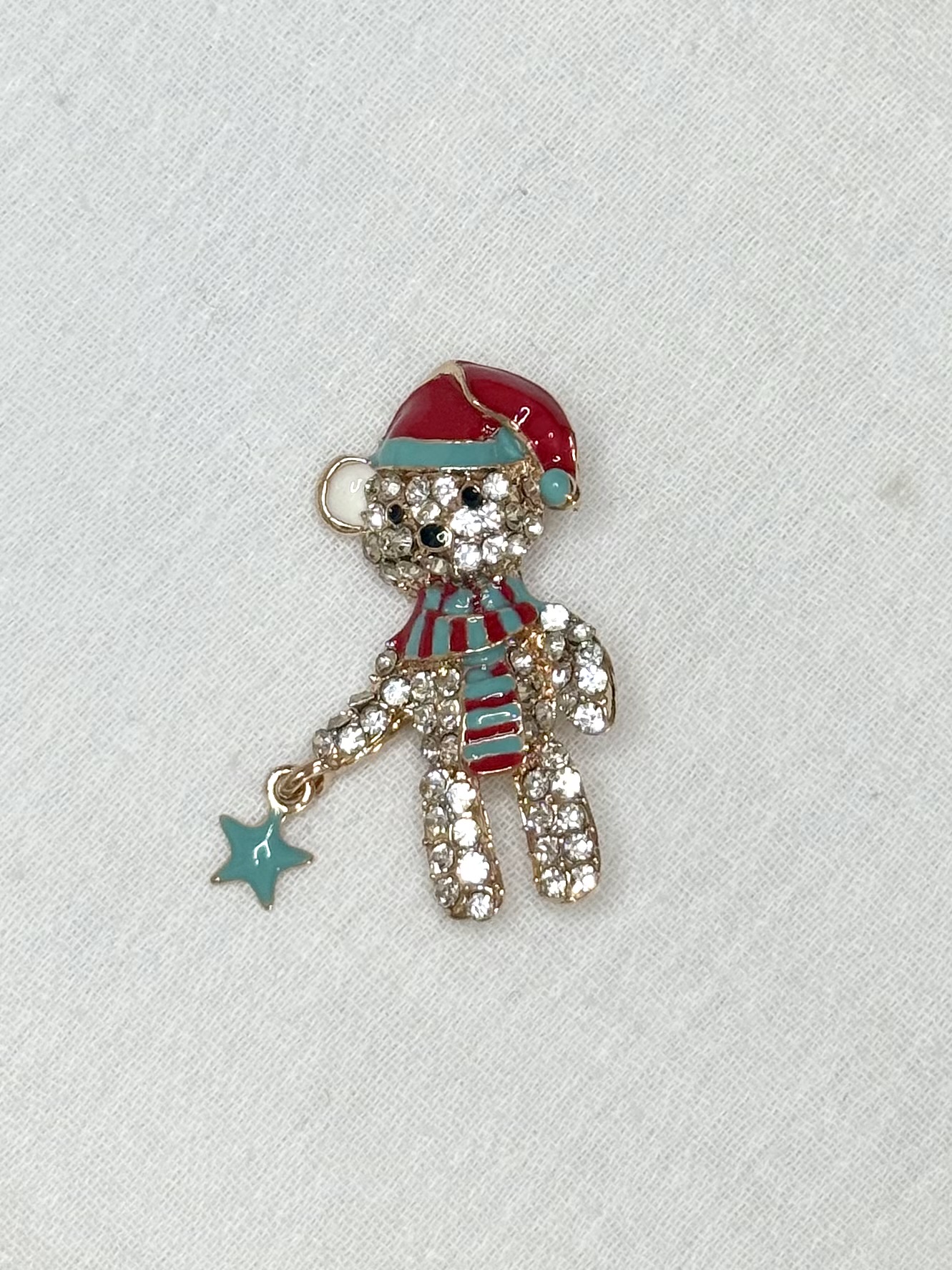 Vier de feestdagen met een vleugje speelse elegantie met de kerstbeer broche. Deze charmante broche toont een schattige kerstbeer die een schitterende turquoise ster vasthoudt, een vrolijk en uniek detail dat direct in het oog springt.