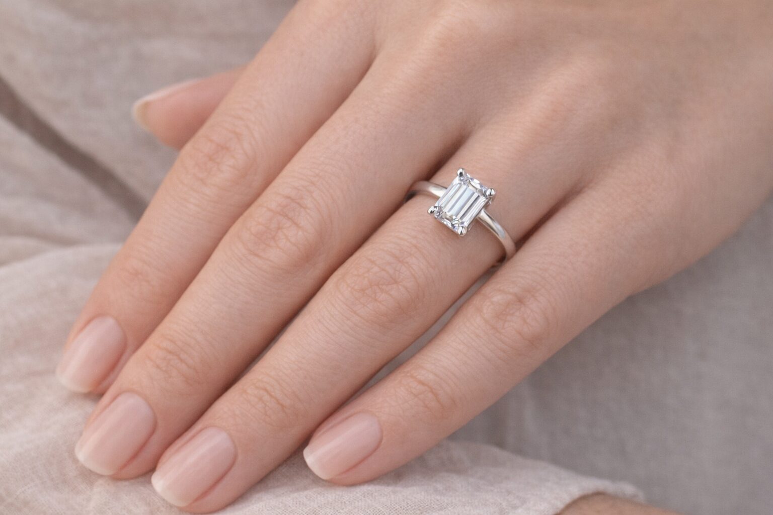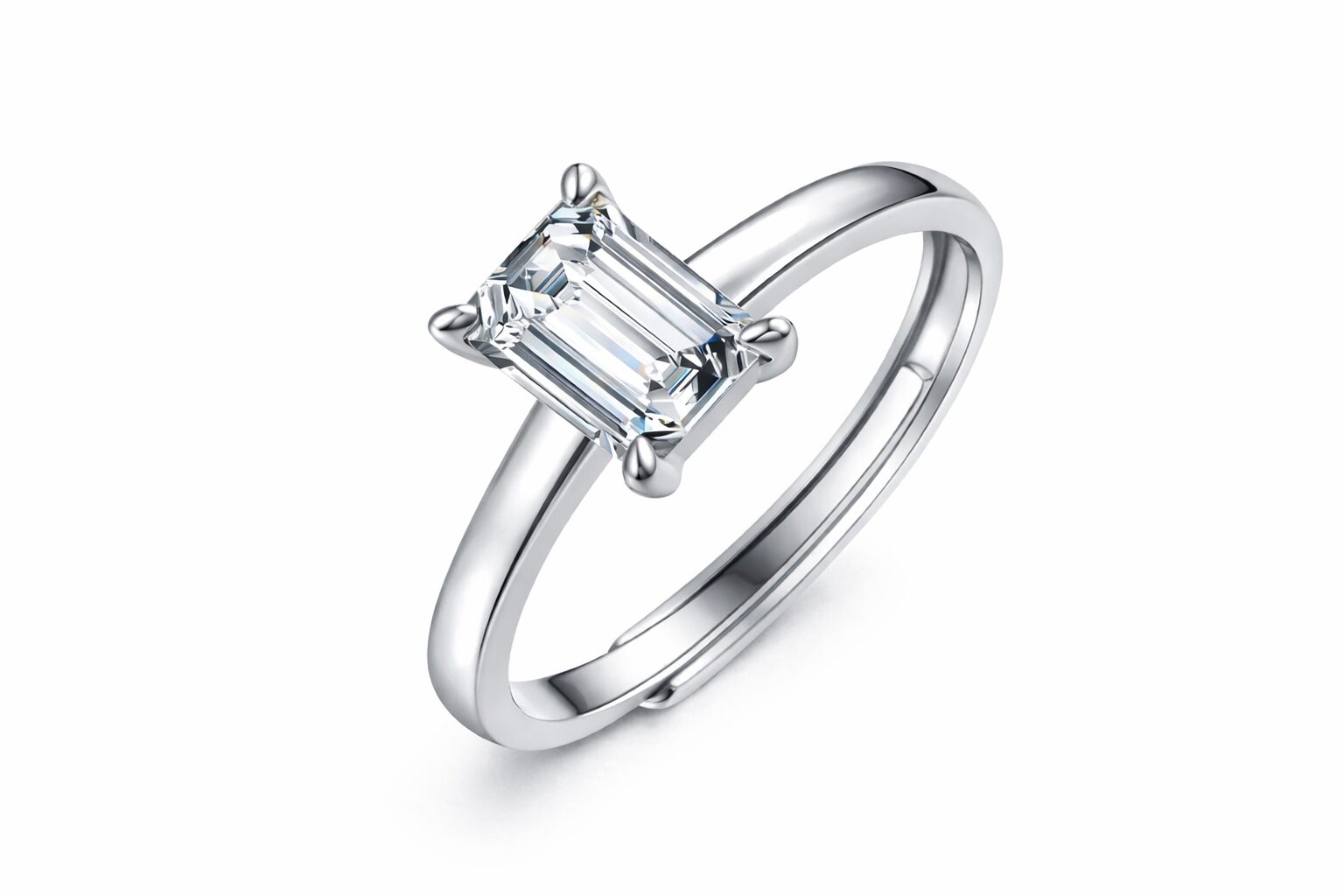 Deze prachtige ring is van 925 zilver en heeft een prachtig geslepen baguette moissanite steen.