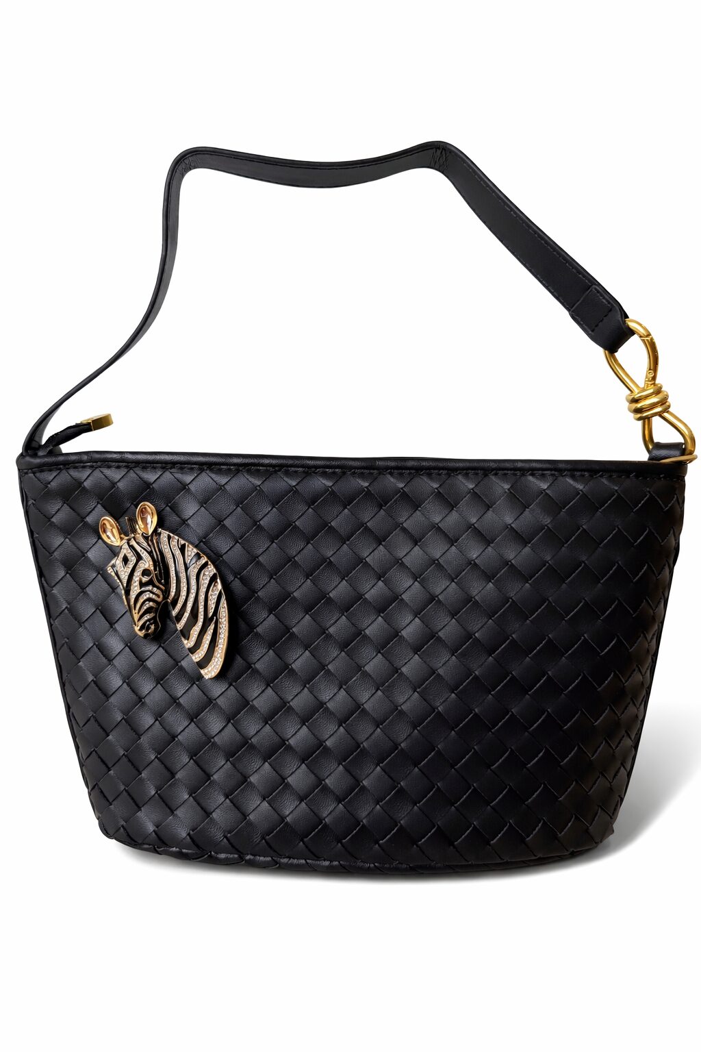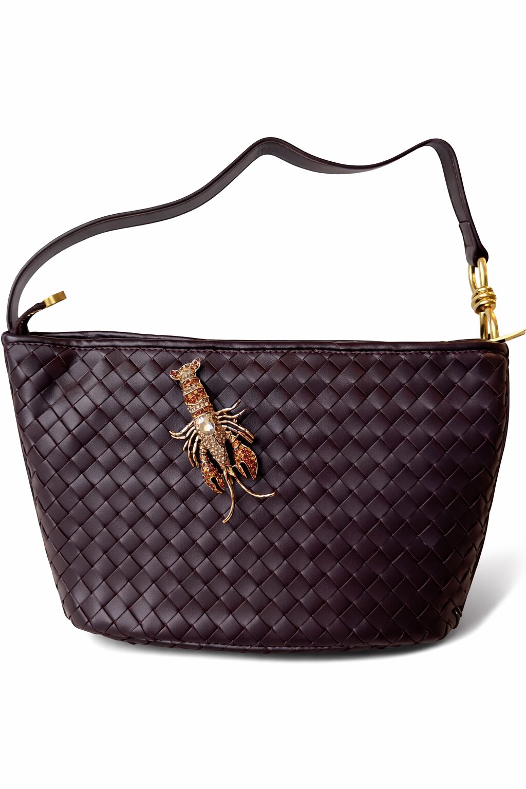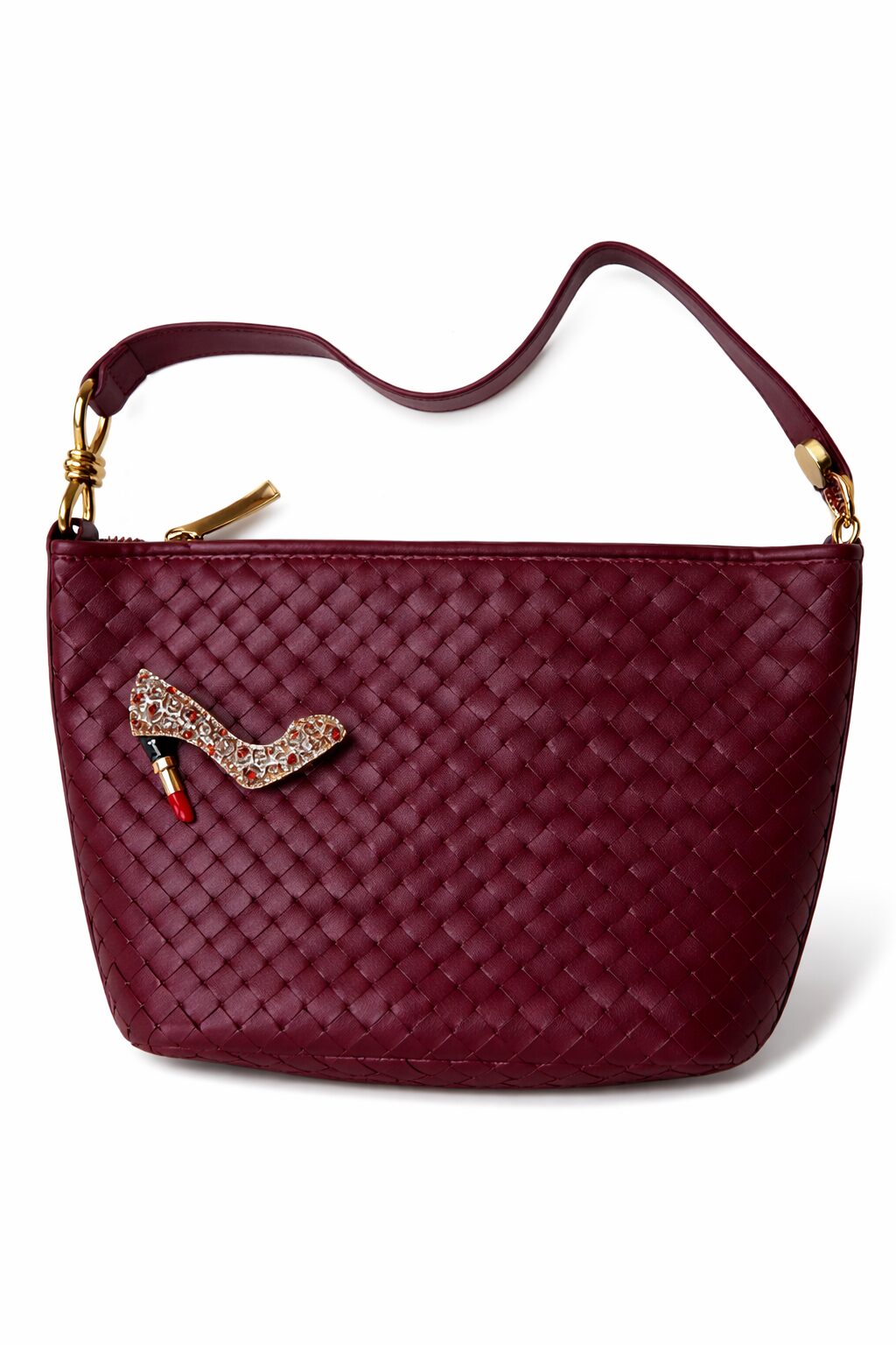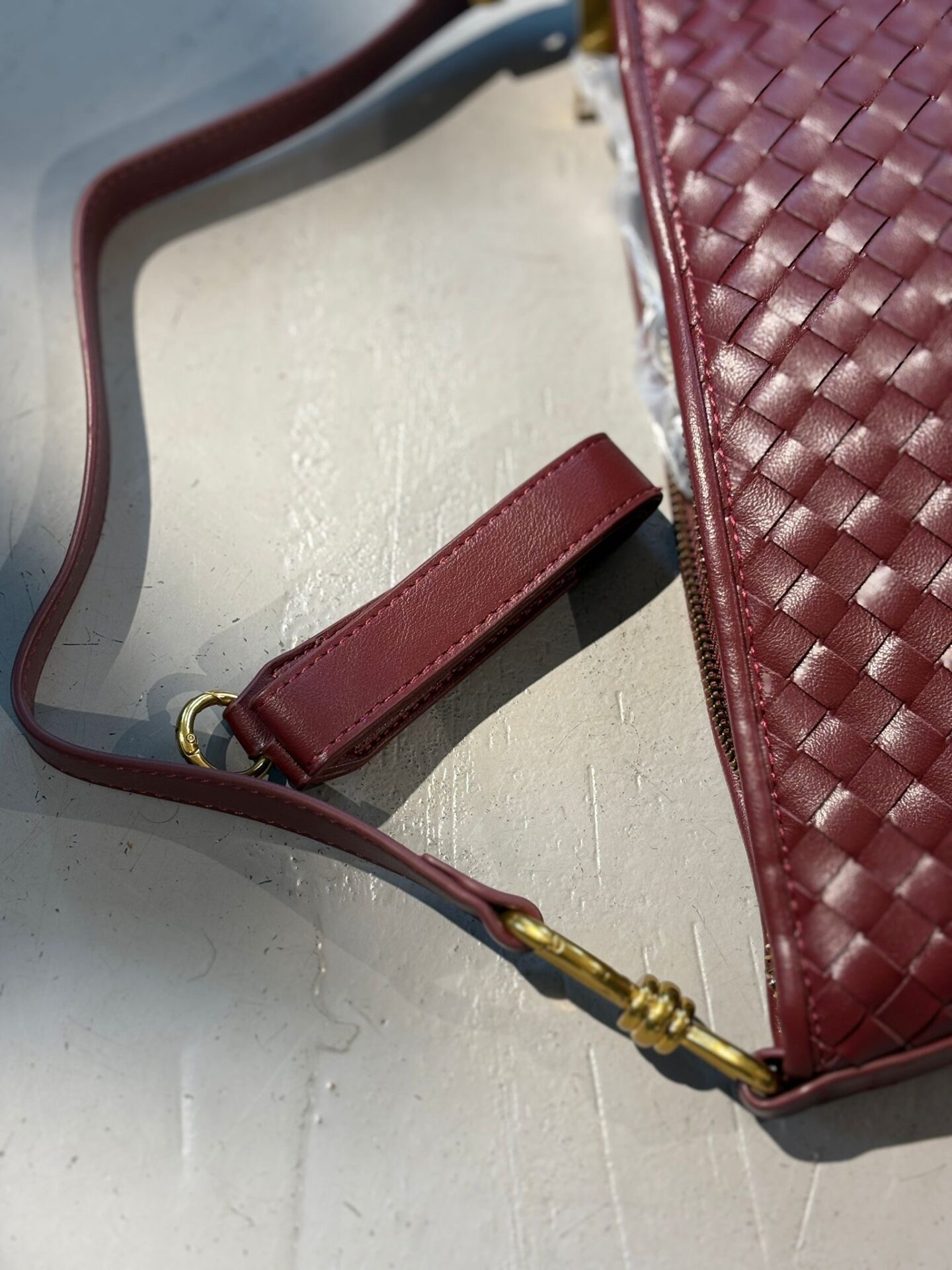 Deze tas is een elegante schoudertas van soepel gevlochten leer in een diepe bordeaux-bruin-zwarte kleur. De compacte maar ruime vorm biedt plek voor je dagelijkse essentials, terwijl de goudkleurige hardware en de subtiele schouderband elke outfit meteen een luxere uitstraling geven. Perfect voor zowel overdag als ’s avonds.